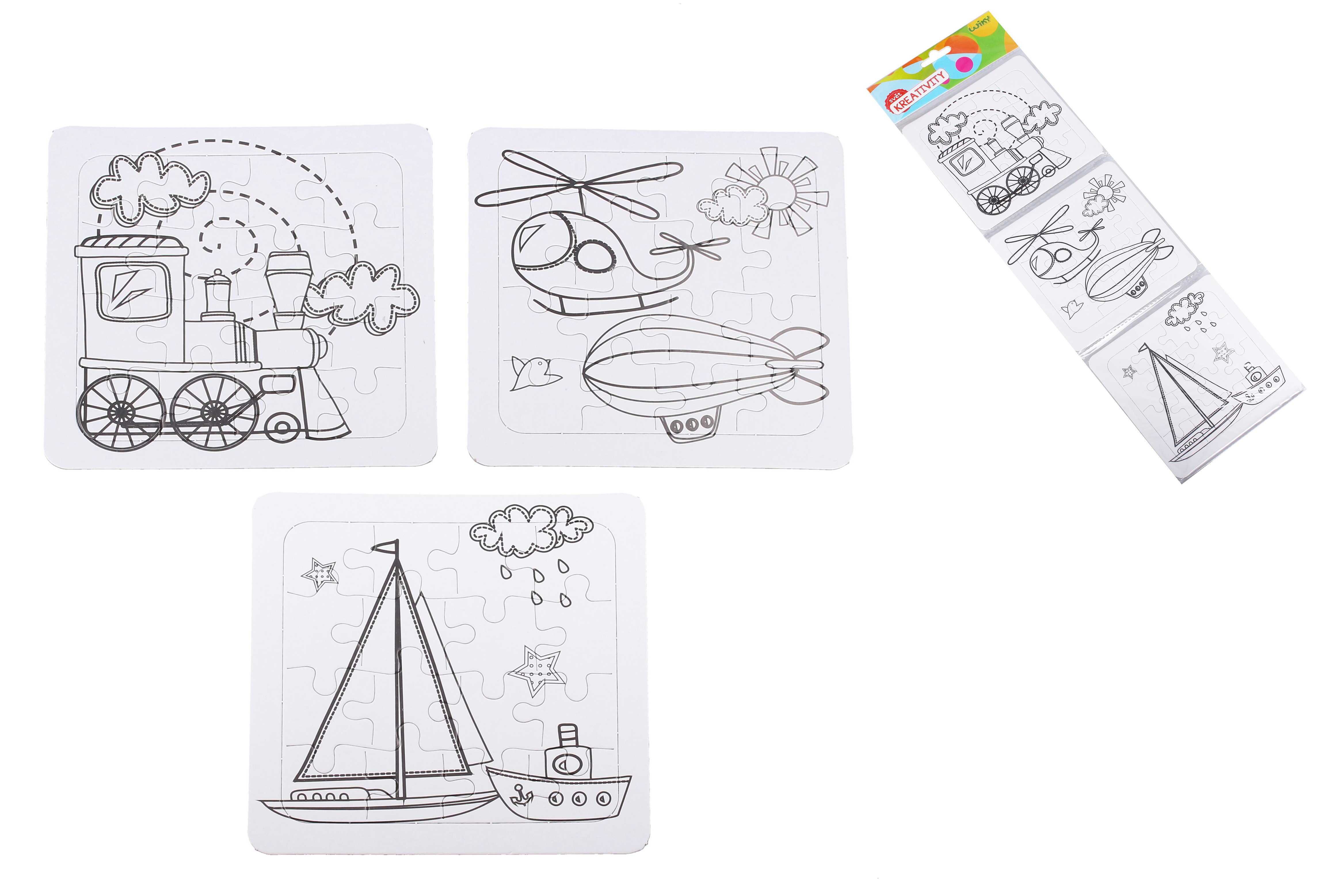 Balenie = 3 puzzle na vyfarbenie