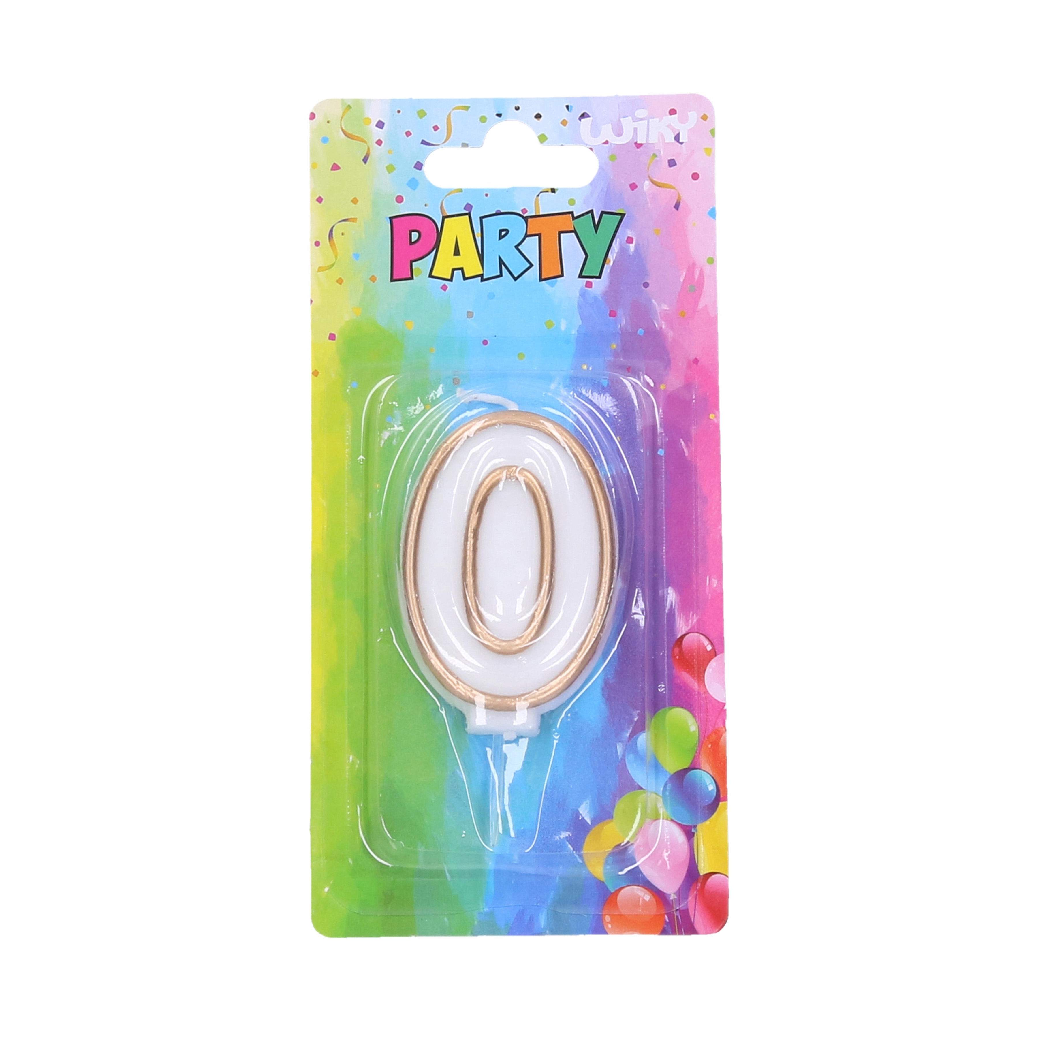 Biela sviečka so zlatým lemom v tvare čísla so stojanom z vosku pre pohodlné a pevné umiestnenie na tortu.