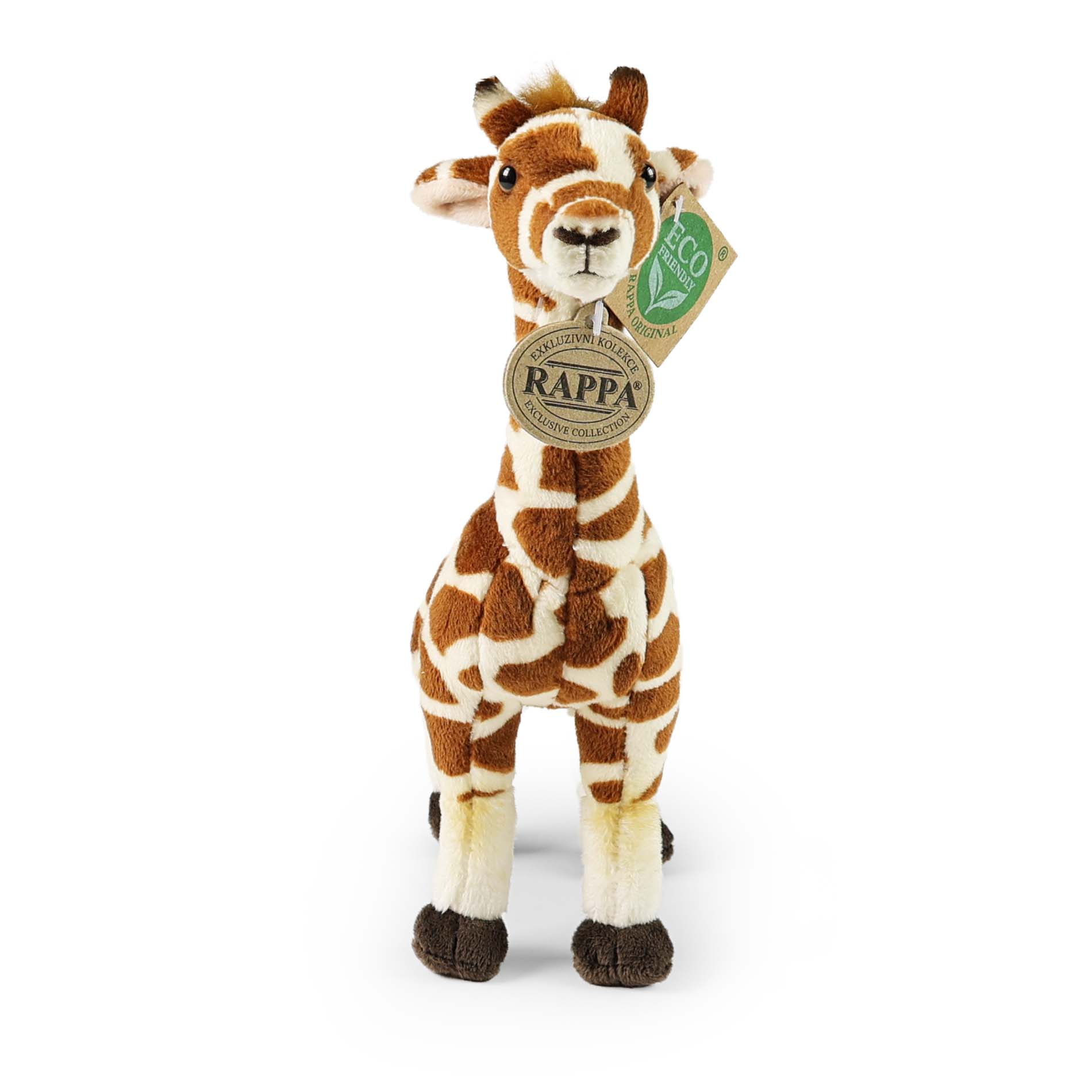 Plyšová žirafa meria 23 cm a vďaka tým najkvalitnejším materiálom sa radí do Exkluzívnej kolekcie plyšových hračiek značky Rappa. Vďaka ručnému spracovaniu každého kusu navyše vyzerá ako živá. Prečo označenie ECO-FRIENDLY? Rappa si je vedomá všetkých dopadov na životného prostredia, zameriava sa na udržateľnosť a obmedzenie používania plastov na minimum. Preto je výplň hračiek vyrobená z recyklovaných materiálov, najmä PET fliaš. Tá je však úplne nezávadná a vhodná aj pre deti od narodenia. FUN FACT: Vedeli ste, že žirafy majú rovnako krčných stavcov ako človek – lenže každý meria až 25 cm?