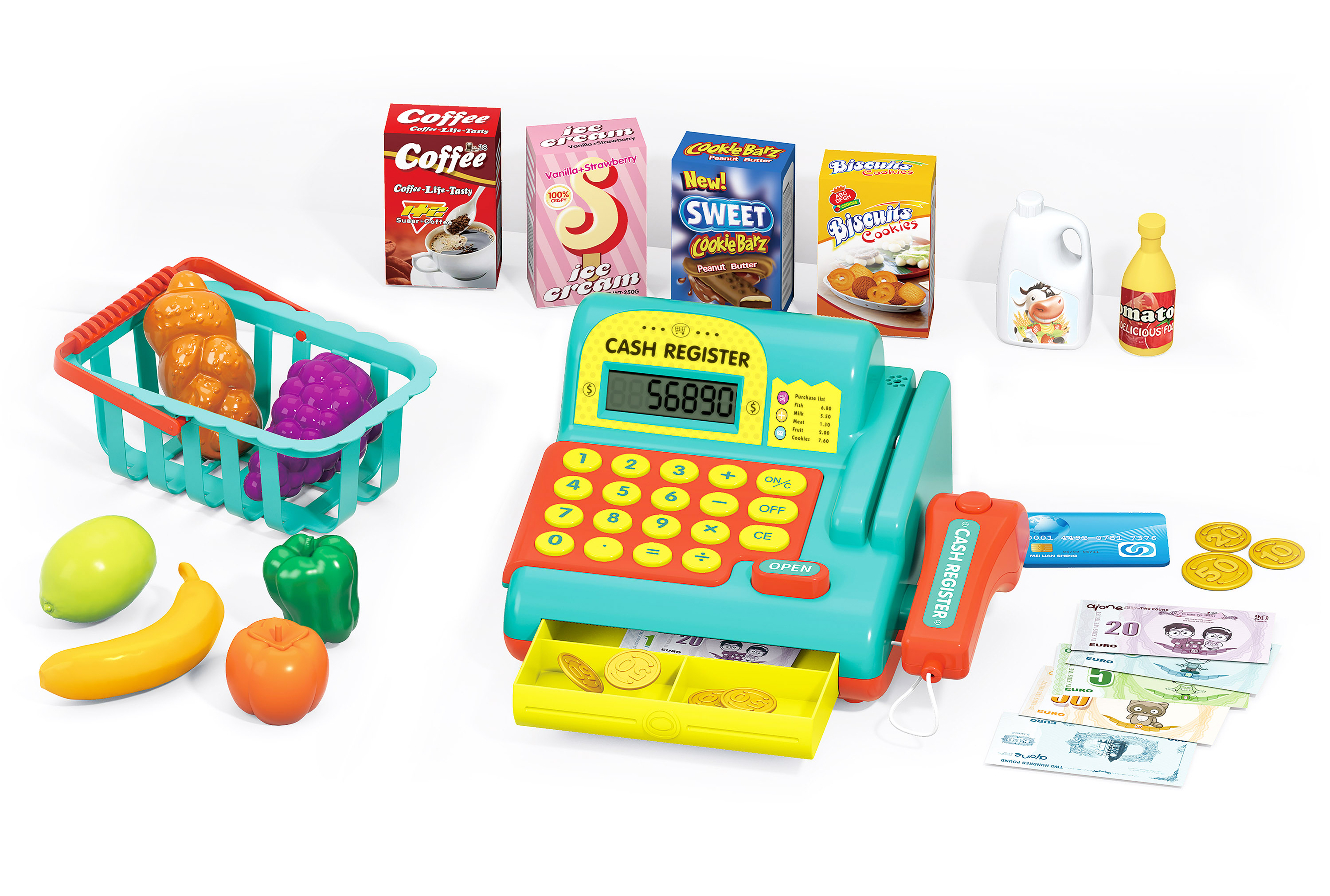Pokladňa s efektmi. Veľkosť 20x16x11cm. Batérie 2xAA nie sú súčasťou.