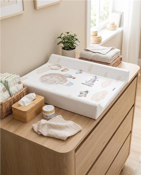 Tento konkrétny prebaľovací pult je vybavený spevnenou doskou a špeciálnymi kolíkmi, ktoré zabraňujú posúvaniu, čo ho robí stabilným a bezpečným pri používaní. Vďaka dôrazu na hygienu, bezpečnosť a pohodlie je nenahraditeľný pri každodennej starostlivosti o dieťa.