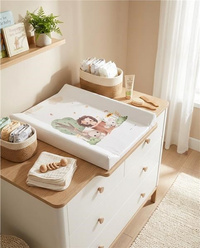 Tento konkrétny prebaľovací pult je vybavený spevnenou doskou a špeciálnymi kolíkmi, ktoré zabraňujú posúvaniu, čo ho robí stabilným a bezpečným pri používaní. Vďaka dôrazu na hygienu, bezpečnosť a pohodlie je nenahraditeľný pri každodennej starostlivosti o dieťa.