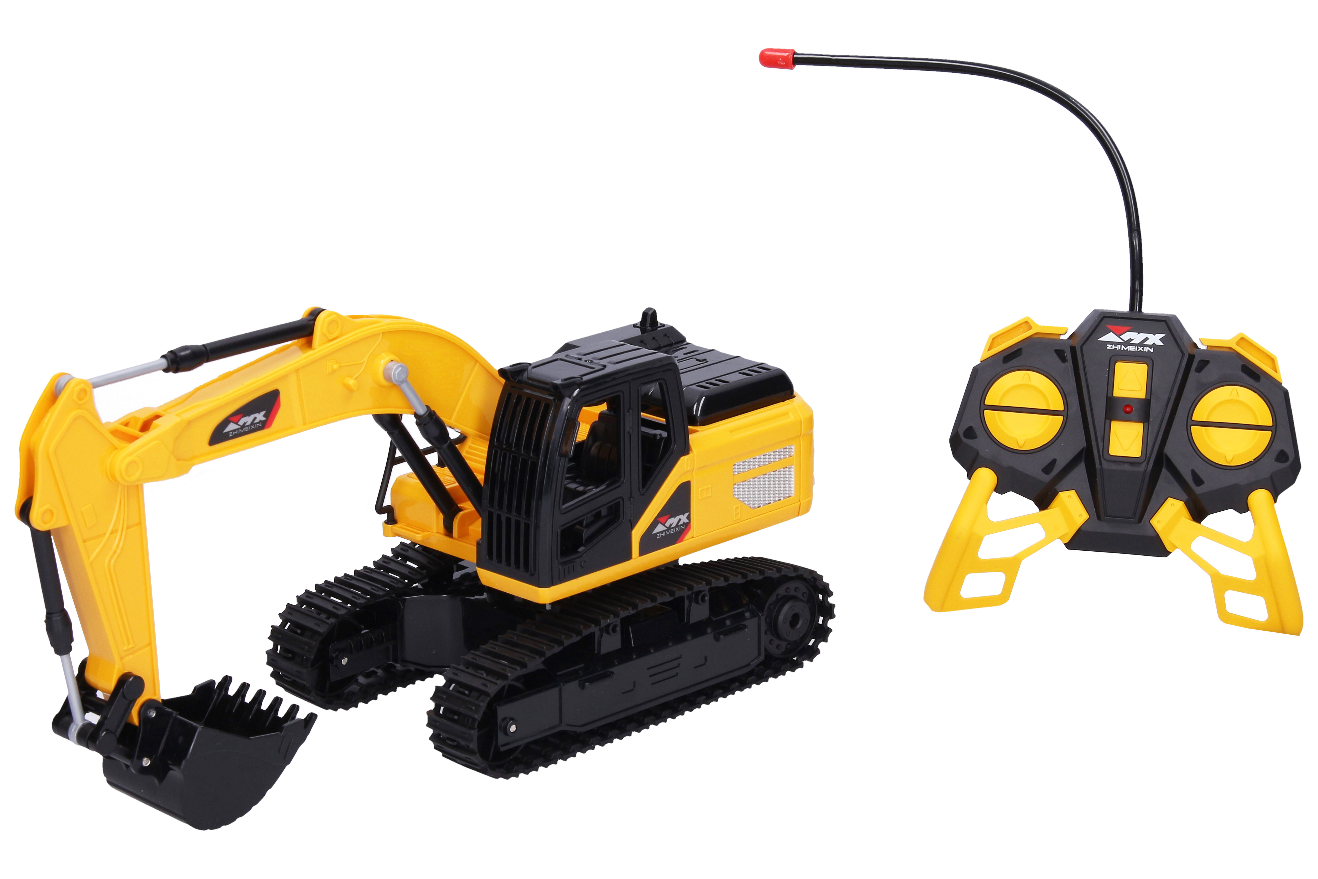 RC bagr na diaľkové ovládanie. Rozmery 26x9,2x13 cm. Frekvencia 40MHz. Manuálne otáčanie základňou. Dosah 15 m. Tlačidlá na ovládači - zdvíhanie a pokladanie naberacieho ramena. Svetelné efekty. 3.7V 500mAh batériový pack do bagra súčasťou, 2xAA do ovládača nie sú súčasťou. USB kábel súčasťou. Prepínač ON/OFF na spodnej strane bagra.