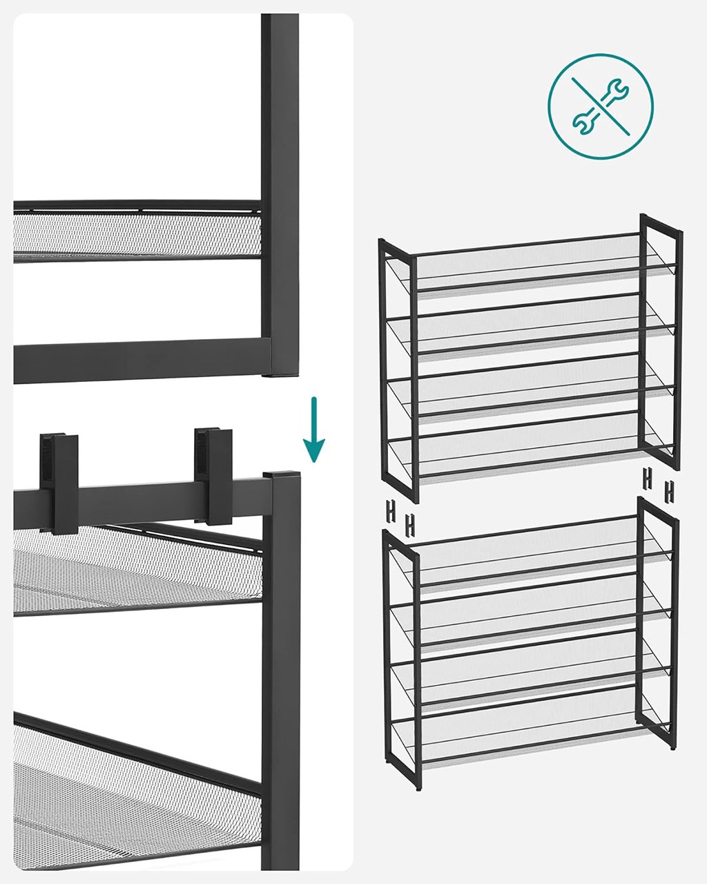 Skrinka obsahuje osem políc na topánky (2 spojené regály po 4 police), ktoré podľa veľkosti obuvi pojmú až 40 párov.