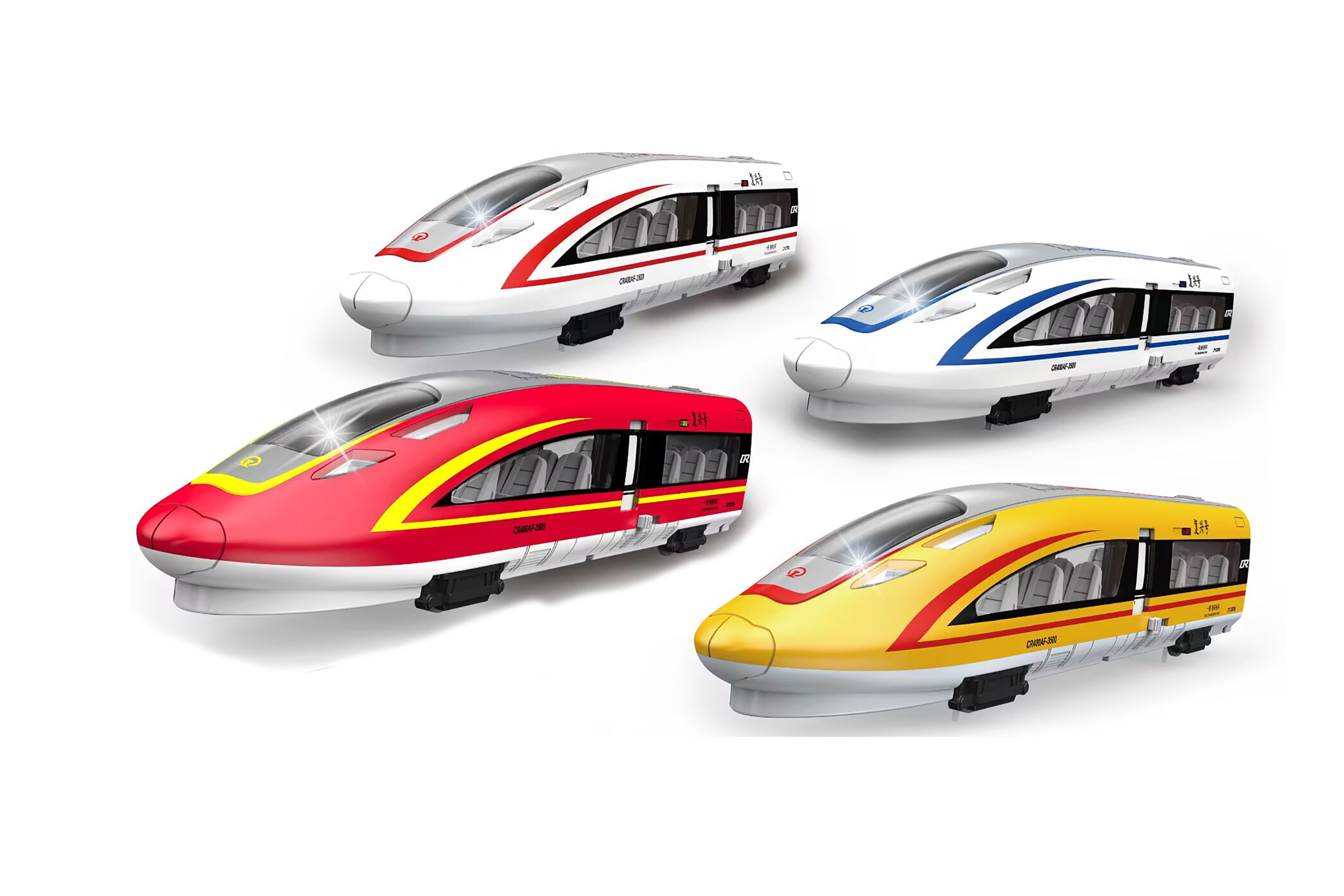 Rýchlostný vlak s efektmi na setrvačník. Presné rozmery 28x4x5,5 cm. Vydáva svetelné efekty a melódie. 3 varianty - žltá, červená, biela. 3xAG13 batérie sú súčasťou balenia.