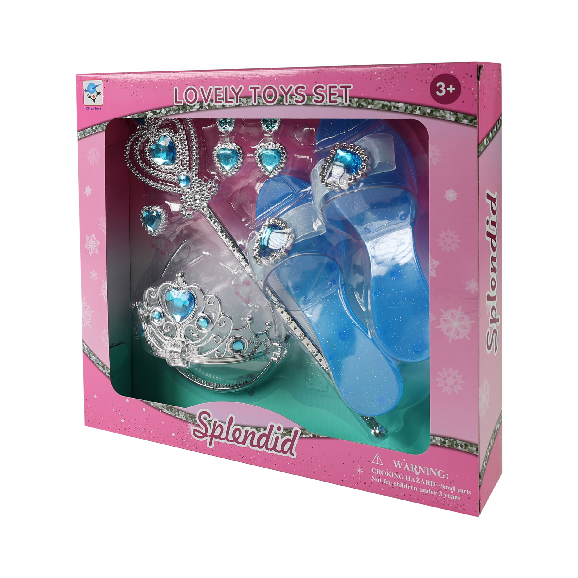 Premeň sa na skutočnú princeznú! Táto krásna súprava obsahuje všetko, čo malá parádnica potrebuje k svojim rozprávkovým dobrodružstvám. Elegantné črievičky, korunku, náušnice, prstienok a kúzelnú paličku. Vďaka strieborno-modrej farebnej kombinácii pôsobí celý set veľmi slávnostne a očarujúcim dojmom. Hodí sa nielen na hranie doma, ale aj na karnevaly, narodeninové oslavy či detské párty.