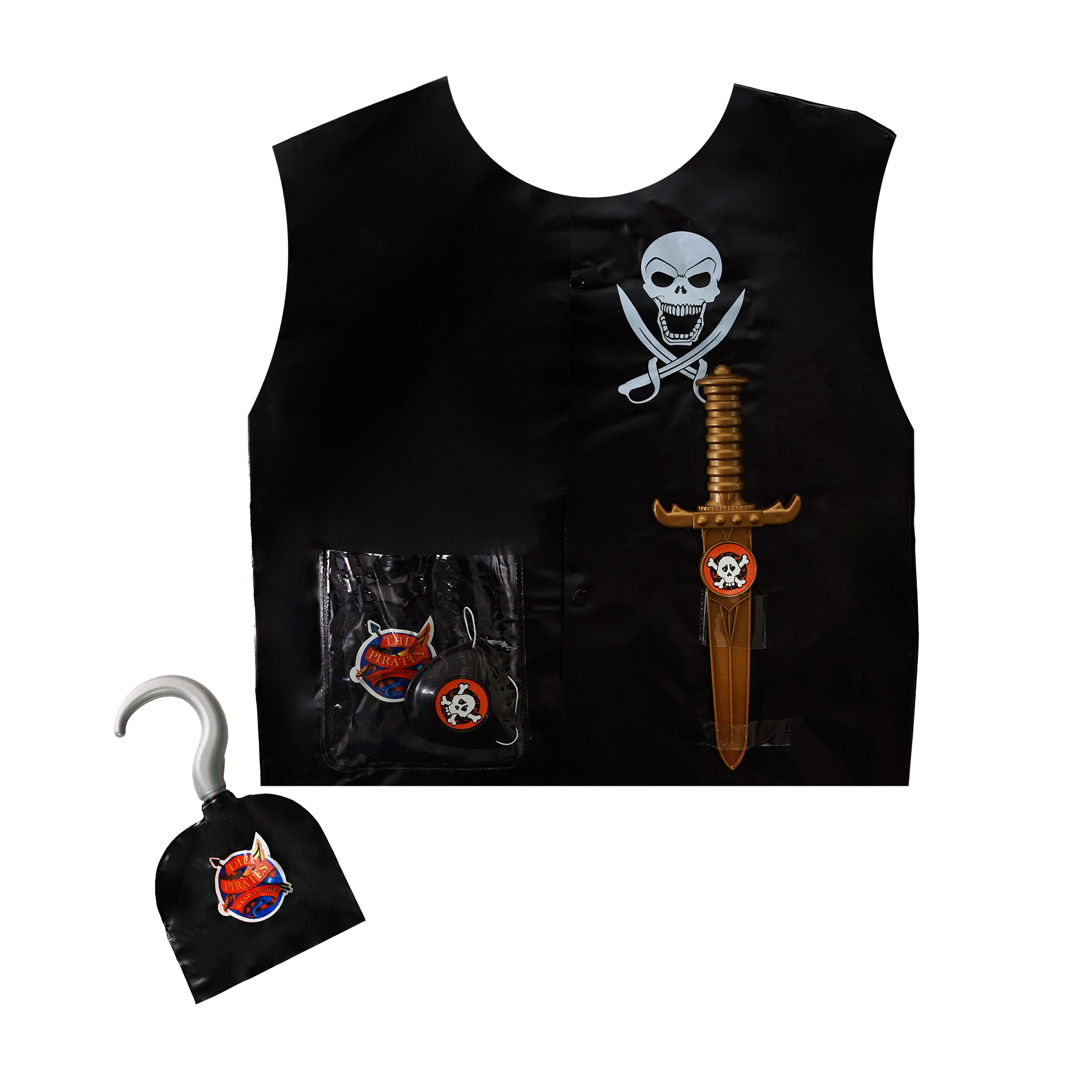 Parádny karnevalový kostým s motívom piráta je určený pre chlapčekov vo vekovom rozmedzí 3-7 rokov (104-122 cm). Balenie obsahuje plášť, plastovú dýku a hák.