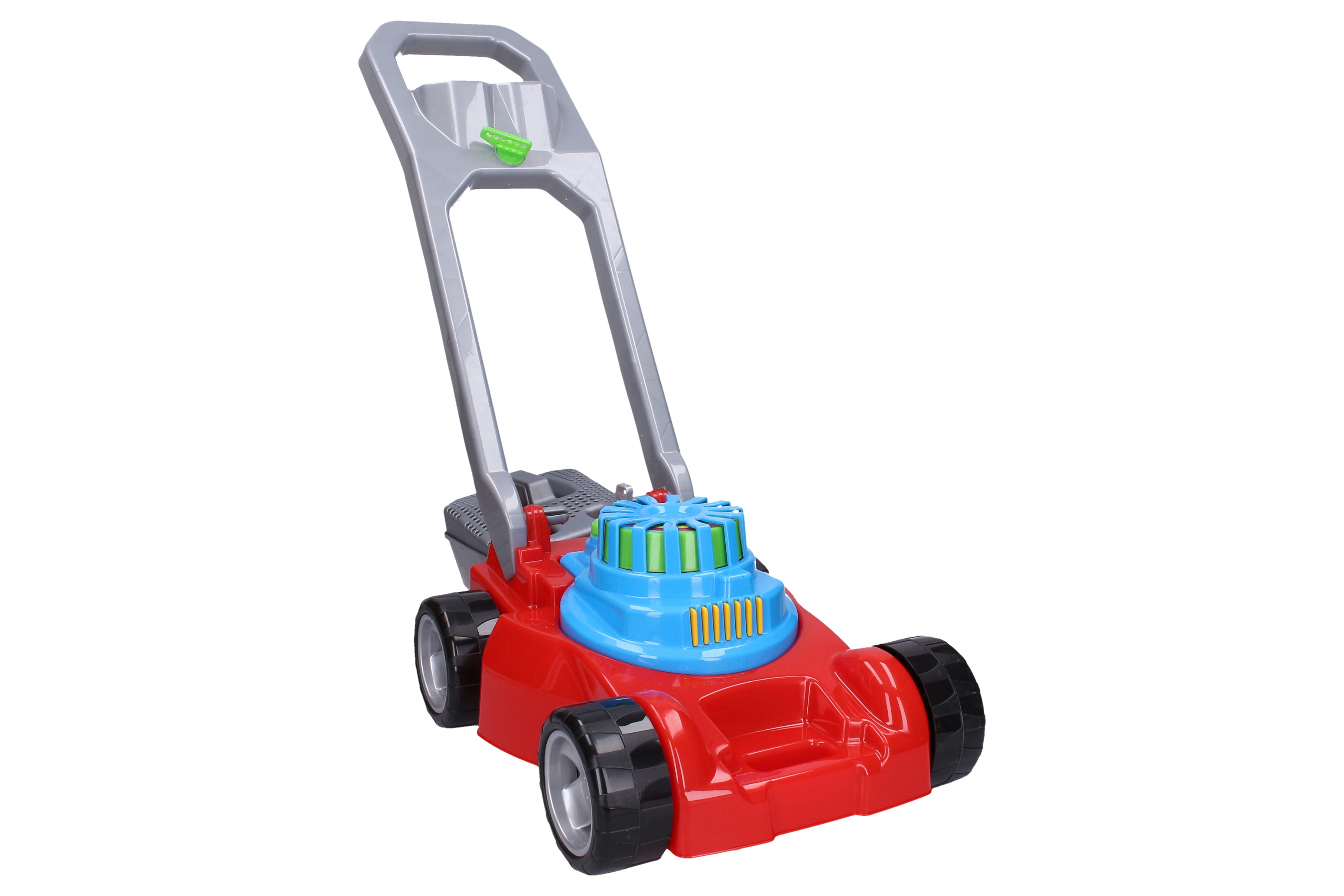 Sekačka na trávu. Složená sekačka 68(d) x 28(š) x 55(v) cm, včetně rukojeti. Velikost sekačky s košem bez rukojeti, 51x28x19 cm. Přední kolečka jsou volná, zadní kolečka při jízdě cvakají. V rukojeti je cvakající otočný spínač. Uprostřed sekačky je barevná rotující spirála, která se roztáčí vytažením, nebo zasunutím páčky.
