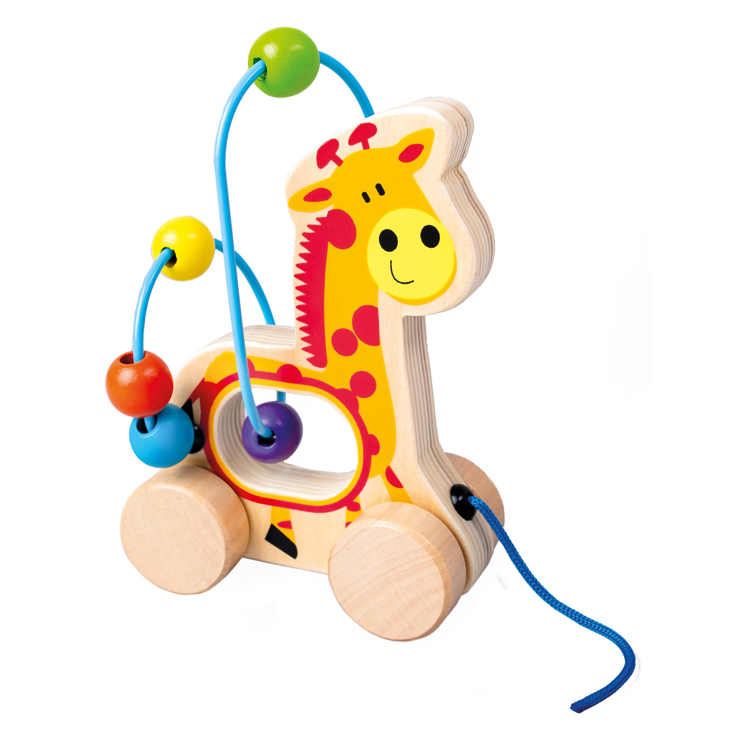 Tiahacia hračka s motívom žirafy, ktorá pomáha deťom s ich prvými krokmi a cvičením rovnováhy.