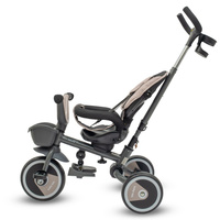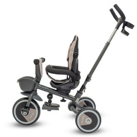 Detská šliapacia trojkolka Baby Mix 5v1 RELAX je multifunkčný dopravný prostriedok, je typickým príkladom produktov GROW UP - rastie zároveň s dieťaťom. Trojkolku môže ovládať ako dieťa, tak aj rodič pomocou nastaviteľnej vodiacej tyče. Po odobratí vodiacej tyče, sklápacej striešky, ktorá chráni pred slnkom alebo ostatných komponentov bude slúžiť ako trojkolka. Má moderný konštrukciu, pohodlné a ergonomicky tvarované sedadlo, ktoré je posuvné a otočné o 360 stupňov, čo umožní dieťaťu cestovať v smere alebo proti smeru jazdy. Je vyrobená z kvalitných a odolných materiálov a skladacia konštrukcia umožňuje bezproblémovú prepravu trojkolky napríklad v kufri auta. Jej skladanie je veľmi jednoduché, intuitívne a nevyžaduje žiadne náradie. O pohodlie a bezpečie počas jazdy sa stará odnímateľná hrazda, päťbodové bezpečnostné pásy, pohodlné stúpačky alebo kolesá vyrobené z tvrdenej peny EVA, ktoré skvele absorbujú nárazy, poskytujú perfektnú priľnavosť a nevyžadujú hustenie. Pre uloženie hračiek alebo potrieb pre dieťa je tu praktický úložný košík.