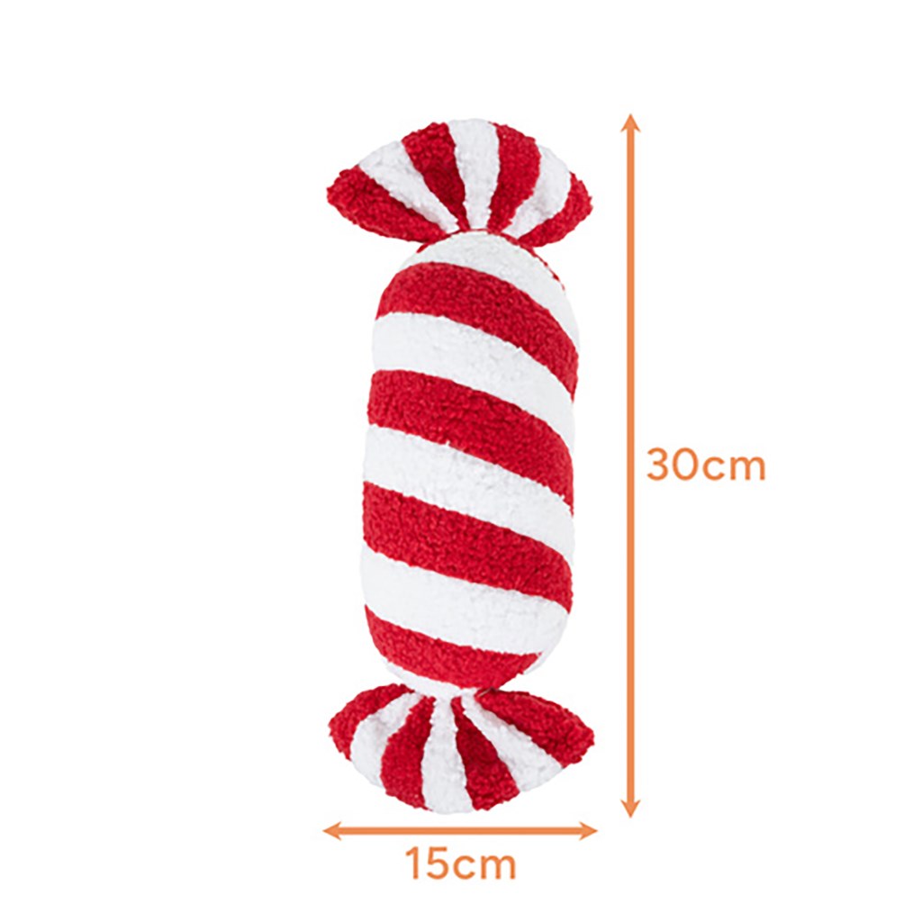 Vytvorte sladkú sviatočnú atmosféru u vás doma s touto mäkkou dekoráciou v tvare cukríka. Červeno-biela farba sa krásne kombinuje s vianočným stromčekom, aranžmánmi aj zimnými doplnkami. Príjemný materiál vnesie do priestoru hrejivosť a pohodu – perfektný doplnok do obývačky, spálne či detskej izby.