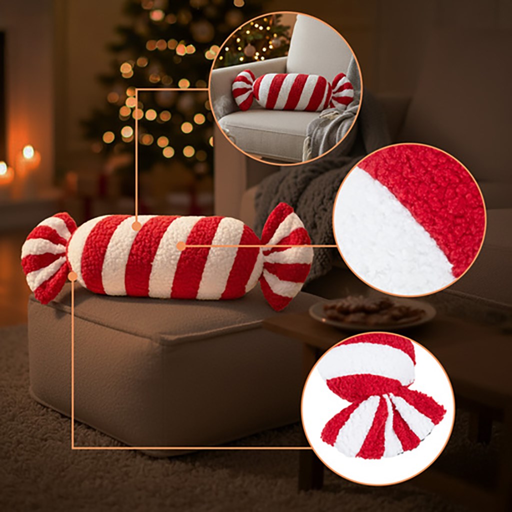 Vianočná dekorácia „Cukrík“ – červeno-biely mäkký vankúšik na Vianoce
